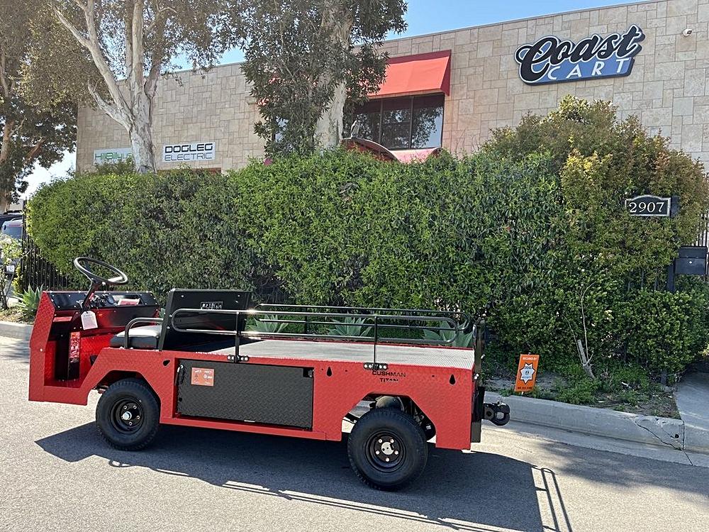 2024 Cushman Titan XD 48v electric industrial heavy duty hauler utility vehicle. Pictured in red with drop side rails &…